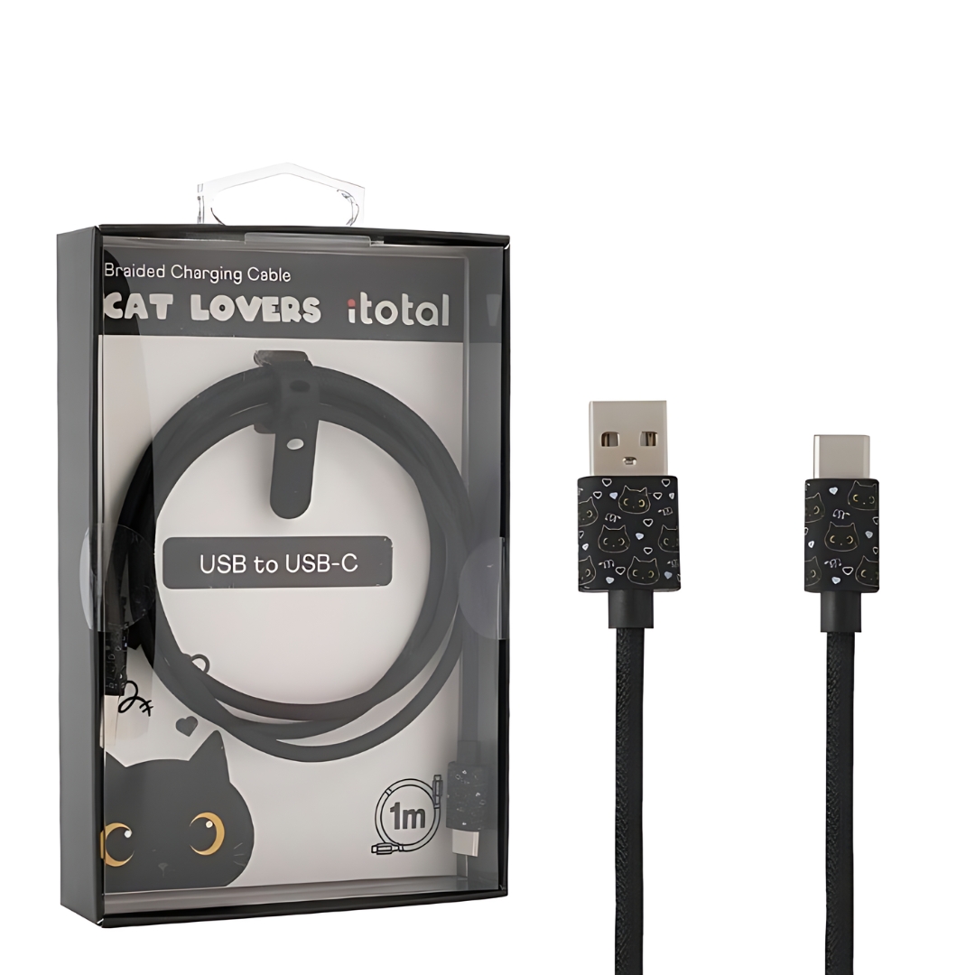CAVO CARICABATTERIE USB A USB-C ITOTAL, GATTO NERO