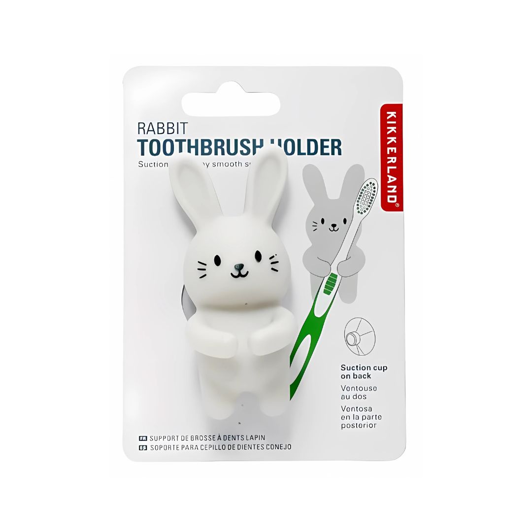 Porta spazzolino universale forma Coniglietto. La ventosa resistente aderisce a superfici lisce e non porose.