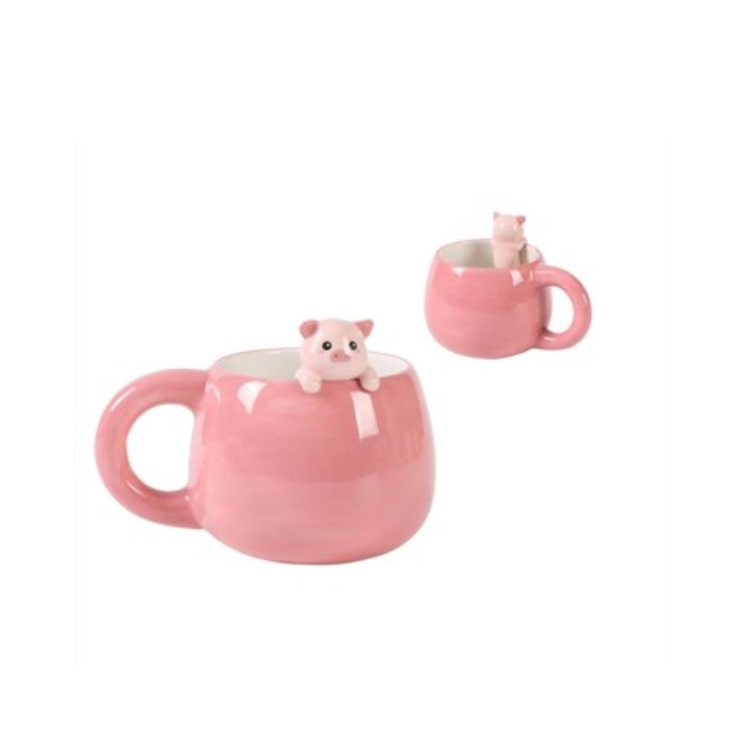 TAZZA IN CERAMICA ROSA CON SIMPATICO MAIALINO IN 3D
