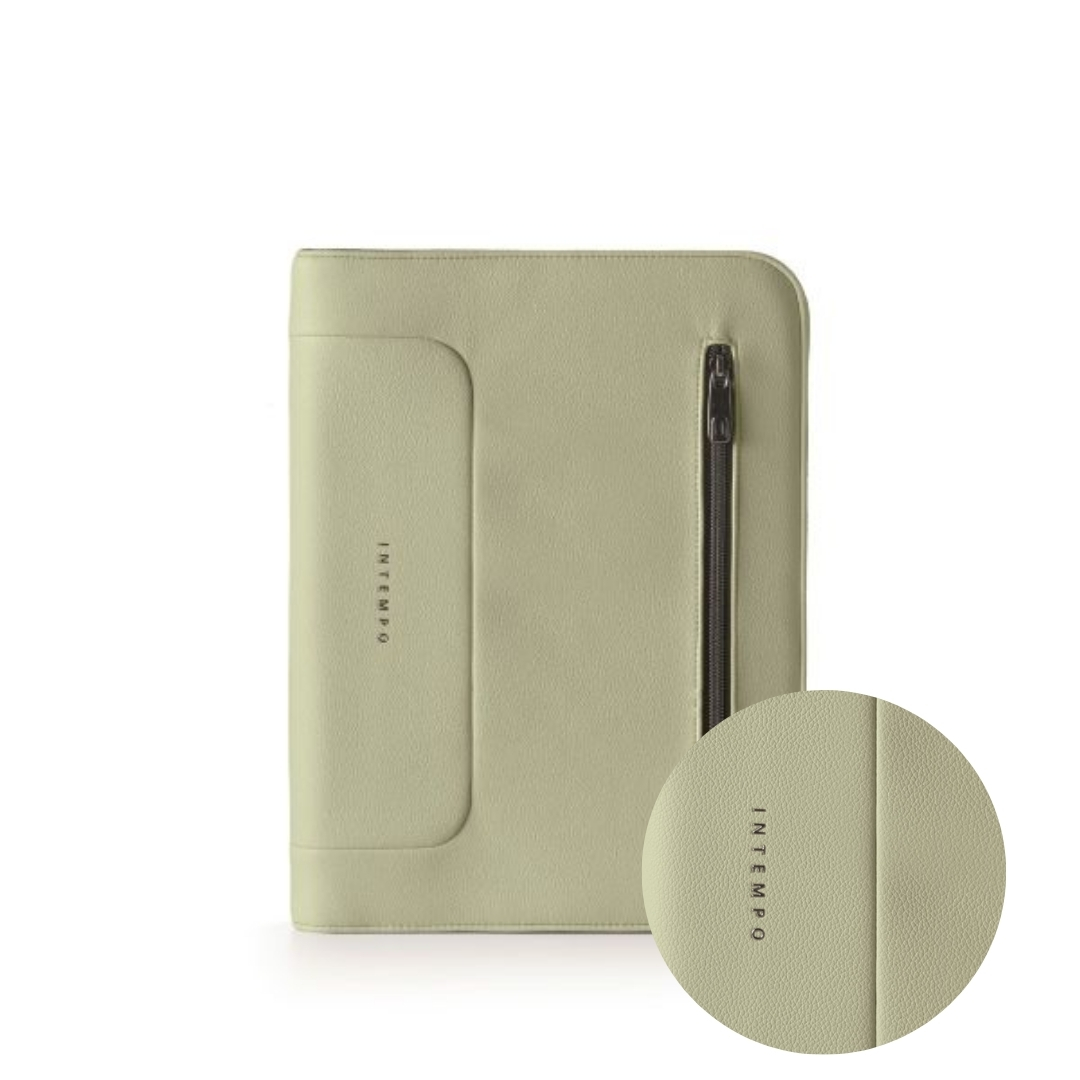 Portablocco con zip, formato A4, doppio inserimento blocco, blocco A4 incluso, aletta porta tablet/cellulare, tasca anteriore con zip,